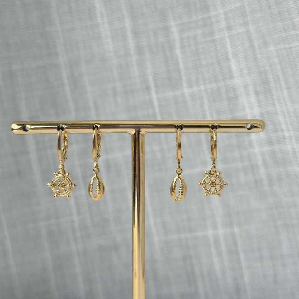Conjunto de Brinco Coração com Ponto de Lu...